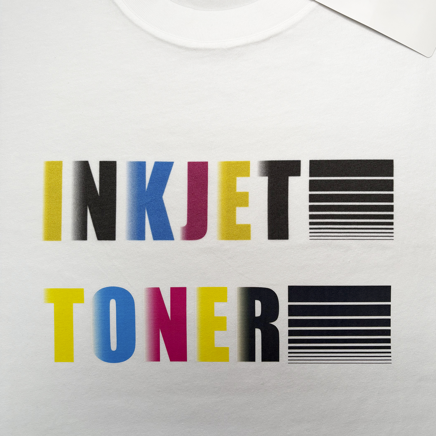 これは、綿100%Tシャツにプリントした直後の画像ですが、着用後、洗濯を繰り返すと、さらにプリント品質に大きな違いが生じることは明白です。